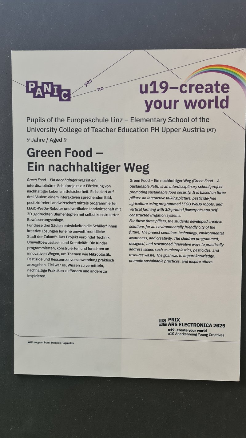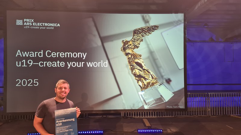 Die Europaschule Linz freut sich über eine besondere Auszeichnung beim renommierten Wettbewerb u19 – create your world, der im Rahmen des Ars Electronica Festivals stattfindet. Mit dem Projekt „Green Food – ein nachhaltiger Weg“ wurde unsere Schule mit einem Anerkennungspreis geehrt.