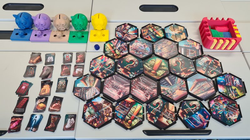 Die Kinder der Praxisvolksschule der Europaschule Linz entwickelten ein eigenes Brettspiel zum Thema „Taschengeld und Finanzbildung“. Ziel war es, den verantwortungsvollen Umgang mit Geld spielerisch zu vermitteln und gleichzeitig Kreativität, digitale Kompetenzen und wirtschaftliches Denken zu fördern - sowie alle Teile des Spiels selbst zu konstruieren und zu produzieren (3D Drucker,...).